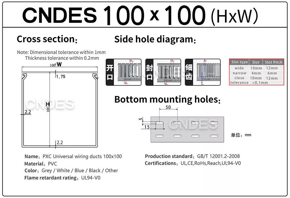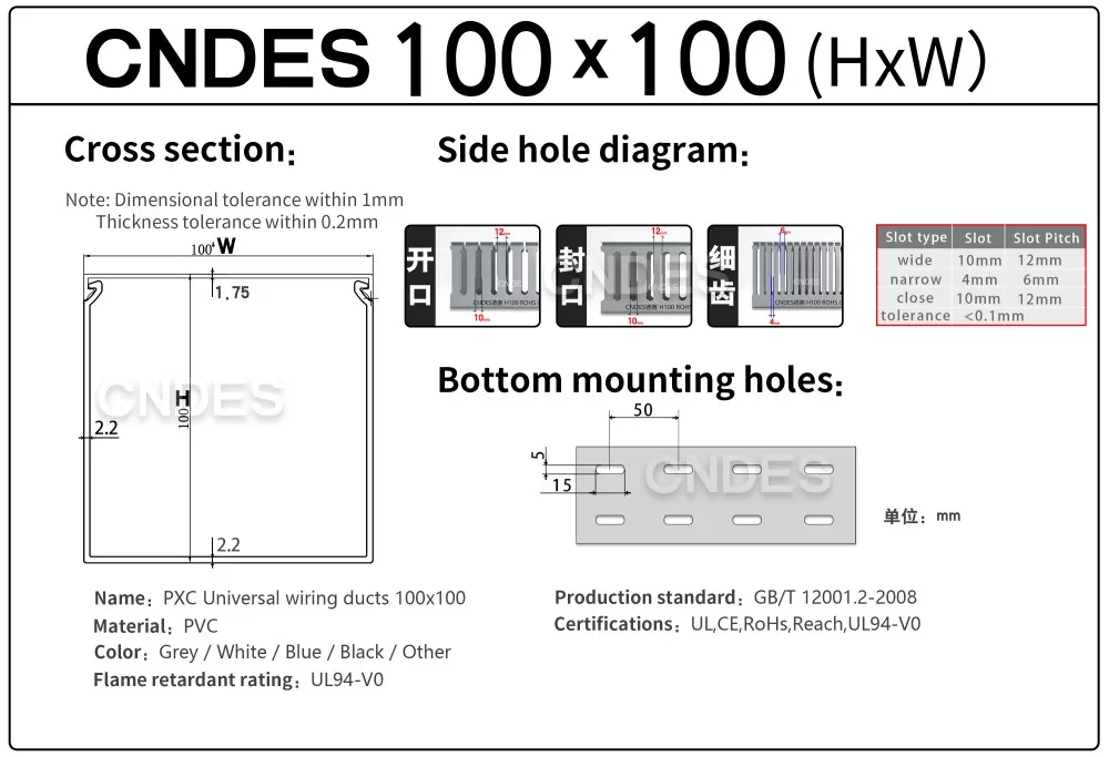ເພີ່ມປະສິດທິພາບໂຄງການສາຍເຄເບີນຂອງທ່ານດ້ວຍການປັບແຕ່ງ 100×100 Wire Management Ducts ຂອງພວກເຮົາ. ໃນຖານະເປັນຜູ້ຜະລິດແລະຜູ້ຜະລິດຖາດສາຍ PVC ຊັ້ນນໍາໃນປະເທດຈີນ, CNDES ສະຫນອງການແກ້ໄຂທີ່ເຊື່ອຖືໄດ້, ຄວາມແມ່ນຍໍາສູງ, ແລະສາມາດປັບແຕ່ງໄດ້ສໍາລັບຄວາມຕ້ອງການການຄຸ້ມຄອງສາຍໄຟຂອງທ່ານທັງຫມົດ. ພວກເຮົາມີຄວາມສະເພາະຂອງທໍ່ສາຍໄຟ (ຖາດສາຍ). ຖ້າທ່ານຕ້ອງການຂໍ້ກໍາຫນົດອື່ນໆ, ກະລຸນາຕິດຕໍ່ພວກເຮົາ!