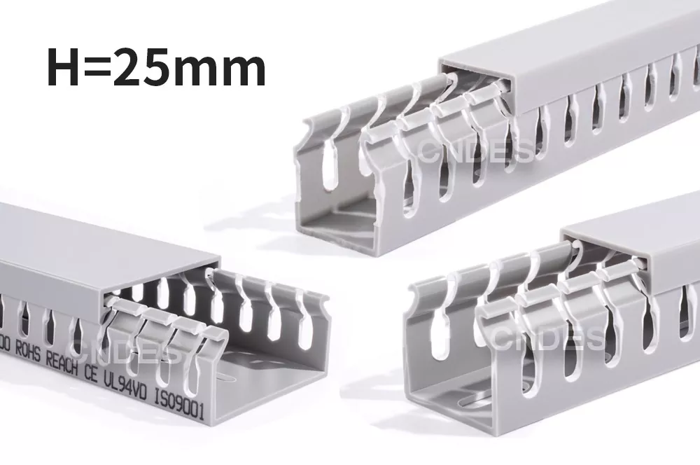 ຜະລິດຕະພັນນີ້ແມ່ນທໍ່ສາຍໄຟ PVC ແບບສະລັອດຕິງຄວາມສູງຕໍ່າທີ່ສ້າງຂຶ້ນເພື່ອຈັດລະບຽບ, ປົກປ້ອງ, ແລະນໍາພາສາຍໄຟຟ້າພາຍໃນແຜງຄວບຄຸມ. ຄວາມສູງ 25 ມມອະນຸຍາດໃຫ້ຕິດຕັ້ງ: