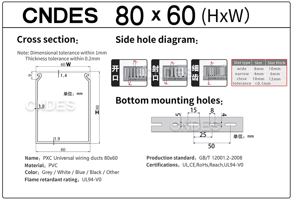 ທີ່ນີ້, ພວກເຮົາຈະແນະນໍາທ່ານສະເພາະຂອງພວກເຮົາຂອງ 80 * 60mm, 80 * 60 ມັນເປັນຕົວແທນຂອງຄວາມສູງຂອງ 80mm ແລະຄວາມກວ້າງຂອງທໍ່ສາຍໄຟ 60mm.